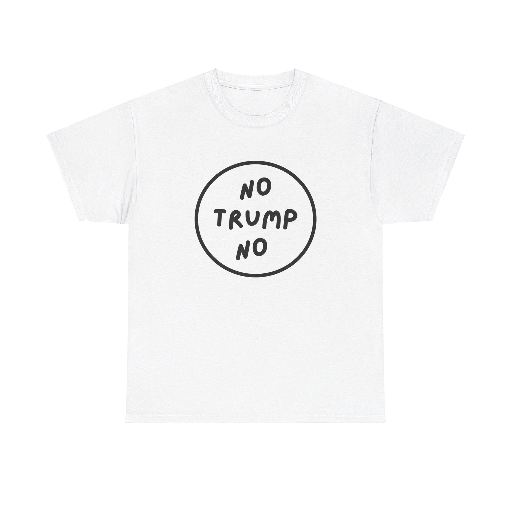 The unisex heavy cotton tee `No Trump No` is the basic staple of any wardrobe. It is the foundation upon which casual fashion grows. All it needs is a personalized design to elevate things to profitability. The specially spun fibers provide a smooth surface for premium printing vividity and sharpness. No side seams mean there are no itchy interruptions under the arms. The shoulders have tape for improved durability.